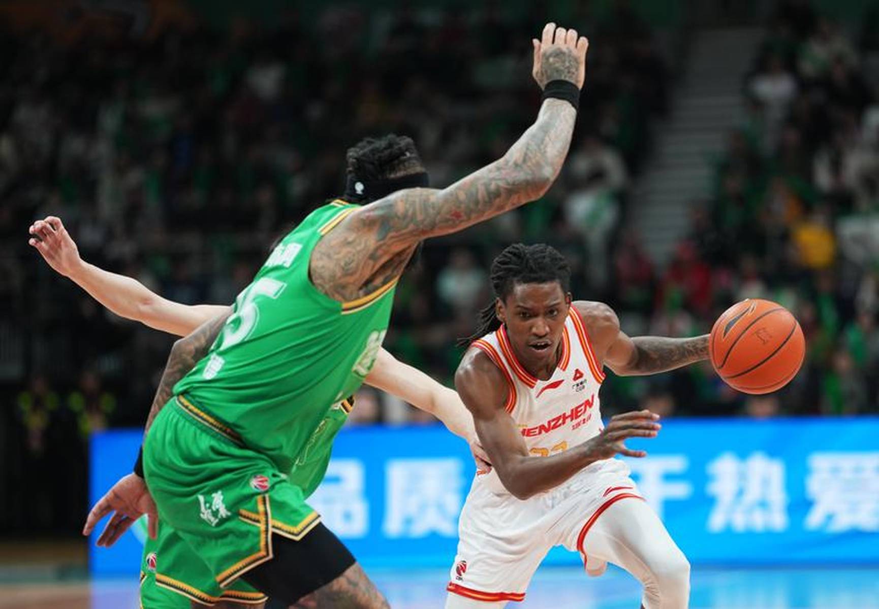 比赛开局便进入白热化,辽宁凭借主场优势率先发力,莫兰德在内线连续抢下前场篮板补篮得分,付豪中距离稳定输出,末段更是打出 10-2 的小高潮,以 25-20 抢占首节领先。此时的贺希宁已经展现出进攻欲望,首节贡献 8 分,用两记三分球为深圳稳住局势,避免分差被进一步拉开。